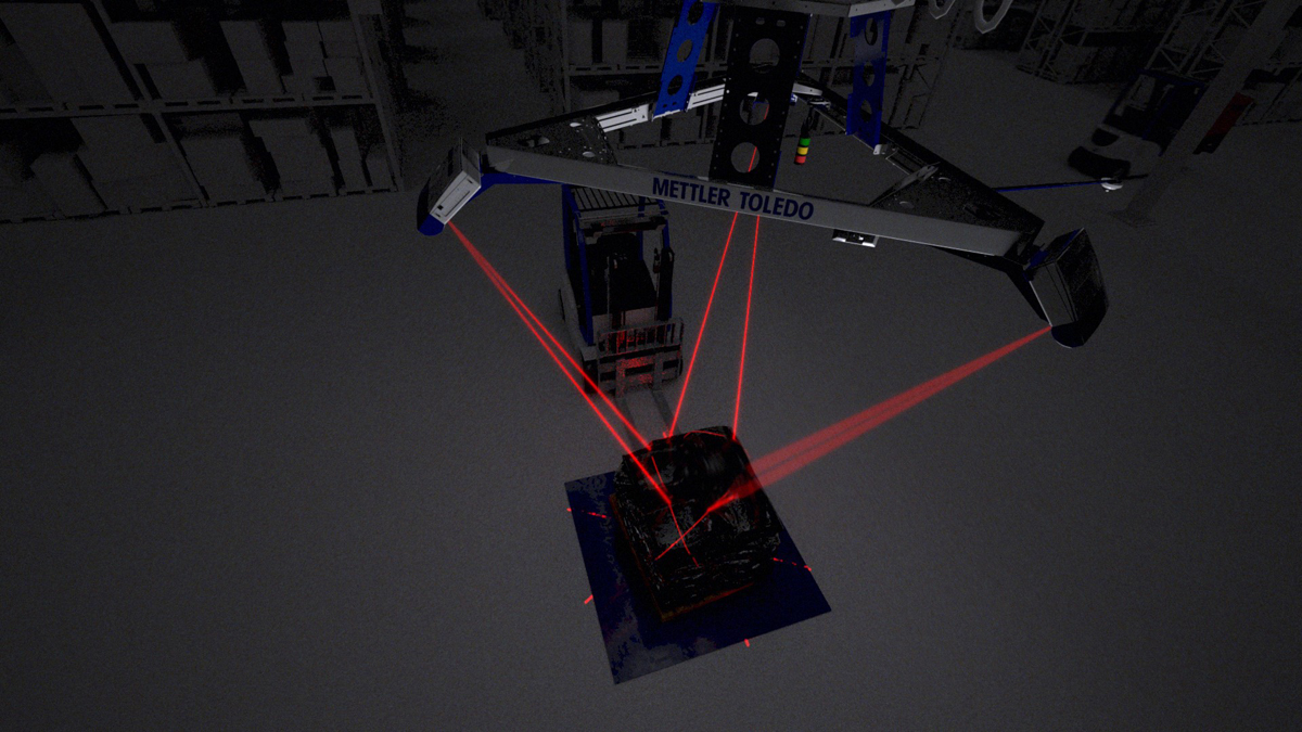 「TLD870」は貨物にレーザーを照射して、長さ、幅、高さを1パレットにつき1時間当たり最大240パレット測ることができます。最大で長さ2.5m×幅2.5m×高さ2.6mまで計測できるので、大きな荷物を扱う荷主、フォワーダー、倉庫事業者などがサイズを測る場面だけでなく、重量の把握やバーコードデータ化の際にも活用いただけます。重さについては、レーザー装置とは別にオプションで床面に設置したフロアスケールで測定し、サイズとともにデータ化します。
