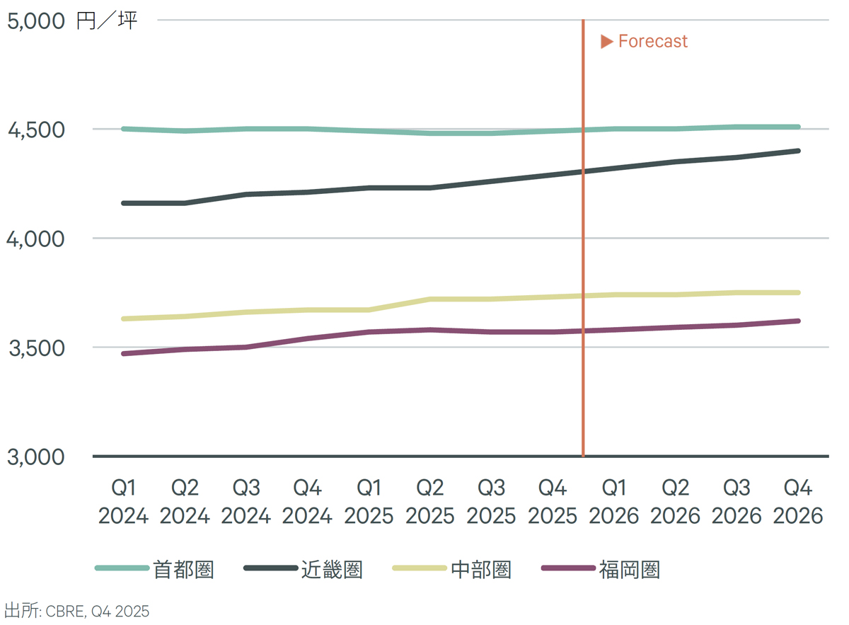 CBREは1月30日、国内物流施設(大型マルチテナント型物流施設)の市場動向をまとめたレポート「ロジスティクスマーケットビュー2025年第4四半期」を発表した。