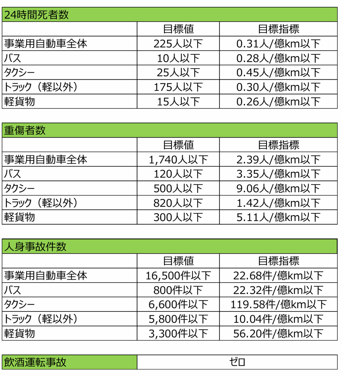 プラン2030の目標案では、走行距離1億km当たりの24時間死者数をトラックでは0.30人以下、軽貨物では0.26人以下とし、年間では「トラック175人以下、軽貨物15人以下」と設定、重点施策として「貨物軽自動車運送事業者に対する安全対策の確実な履行」「軽貨物事業の実態把握・分析」などを盛り込んでいる。