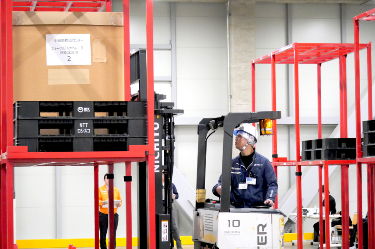 NTTロジスコは1月23日、東京都大田区の平和島物流センターで「2025年度フォークリフトオペレーター技能発表会」を開催した。