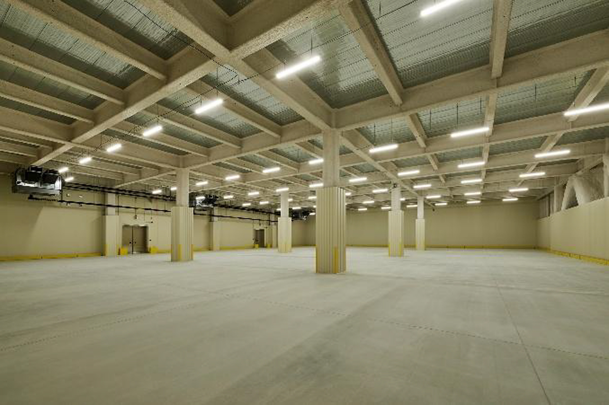 防熱仕上げ後で、床荷重は1.5t/m2、梁下天井有効高は5.5m。L字型バースの採用で接車可能台数を確保し、高いレイアウト自由度を有する。倉庫の一部を-21℃~5℃の温度帯可変式にしており、入居テナントの希望に応じた温度設定が可能だ。