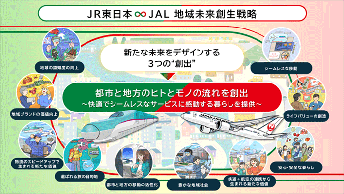 両社が持つ強みやアセットを組み合わせることで、東日本エリアでの「広域観光モデルの創出」「関係人口・定住人口の創出」「新たなマーケットの創出」の3つの“創出”を軸に、人流・物流の活性化や地域が抱える社会課題の解決に向けた取り組む。