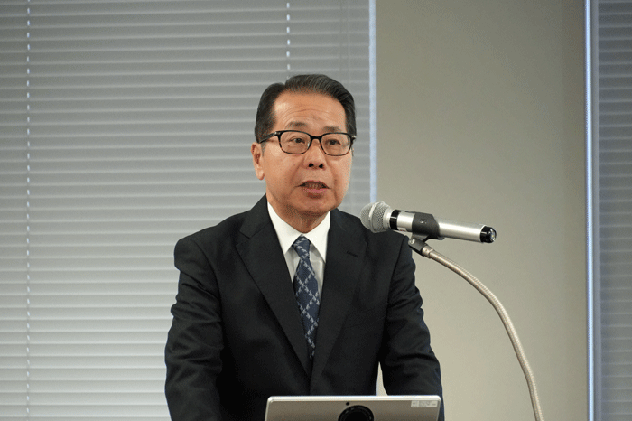 開会にあたり、JPICの森隆行 理事長があいさつ。物流の未来を大きく変える一歩として、PIMMの完成を報告するとともに、「政府が示した2024年のPI実装へのロードマップが地図とするならPIMMは、進むべき新たな羅針盤となり得る。PIMMを活用することで構想から実行の段階へ移ると確信している」と述べた。