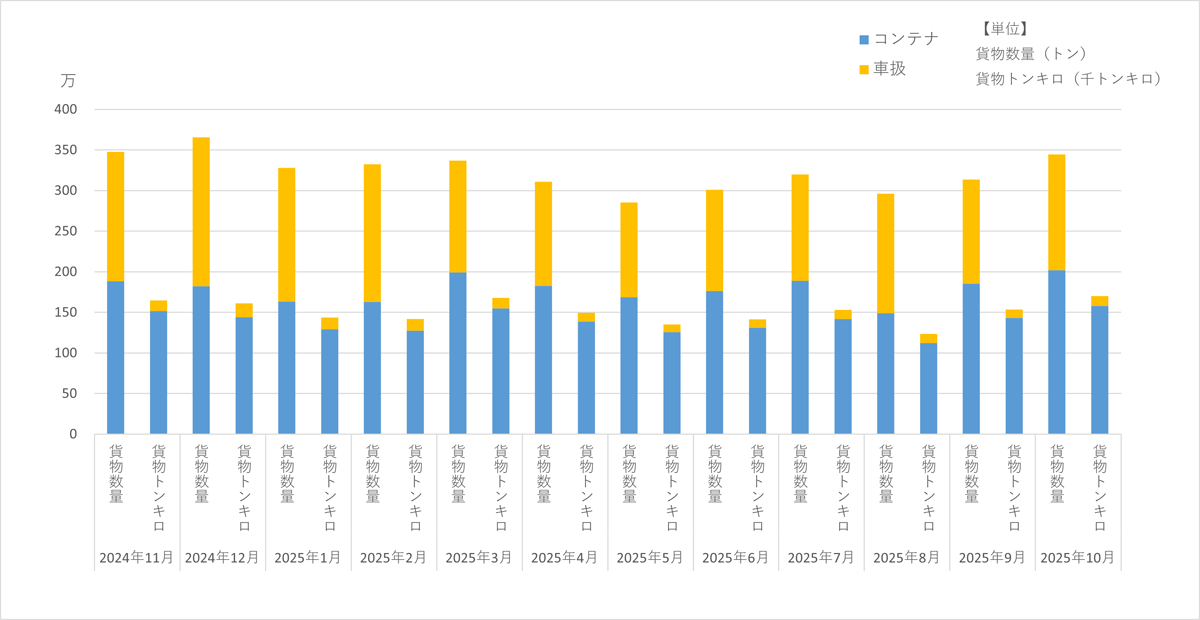 <2025年10月の鉄道貨物輸送量>