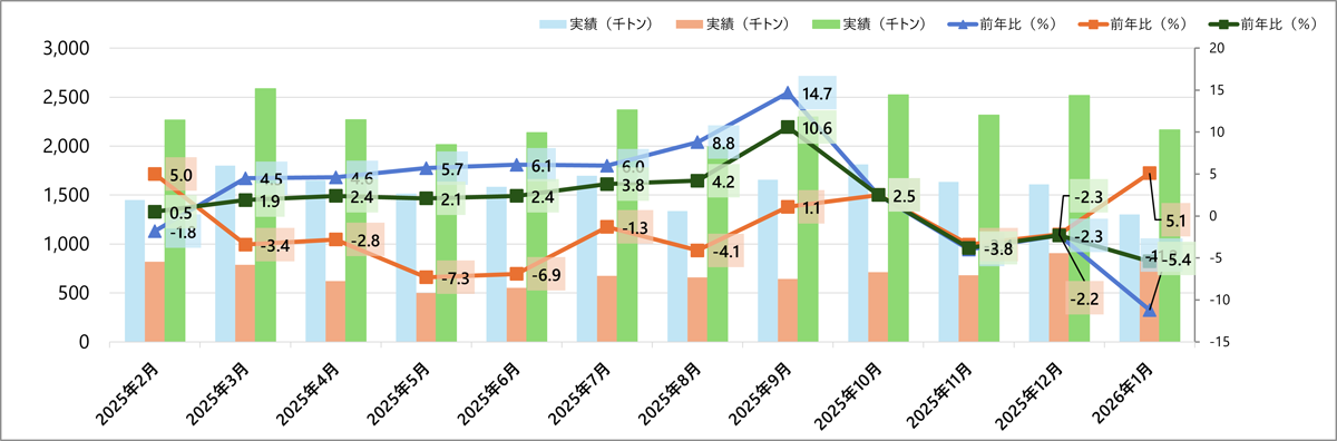 | 実績(千トン) | 1,303 | 862 | 2,166 |