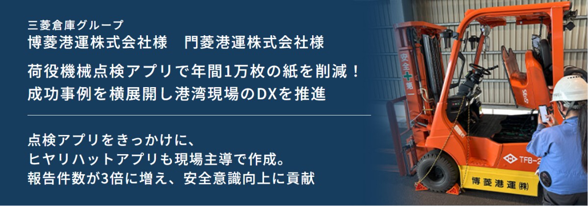 博菱港運では、福岡市内の港に陸揚げされた積荷をフォークリフトなどの荷役機械で搬送する港湾運送や倉庫荷役業務を担う企業。同社は、業務効率化やDXの推進に注力する中で、荷役機械の始業前点検が紙の日報に手書きで記録されている現状を課題と捉え、改善施策を検討していた。