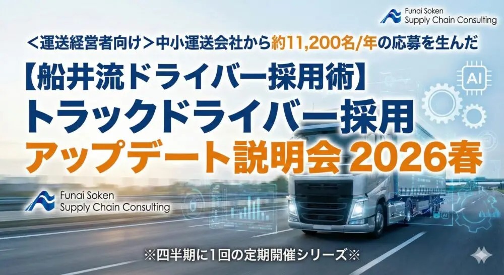 船井総研サプライチェーンコンサルティングは3月11日、「トラックドライバー採用アップデート説明会2026春」をオンライン開催する。