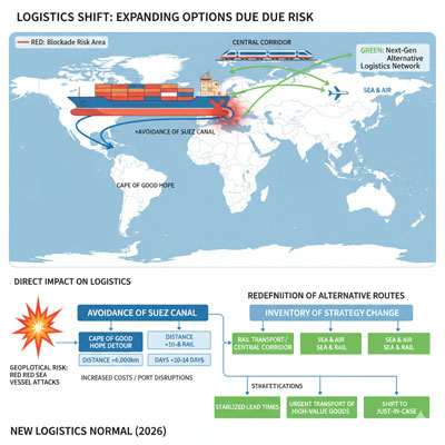 | 政治・安全保障 | 同盟、経済制裁、紛争リスク、規制 | 紅海情勢による迂回、一帯一路の多角化(中回廊) |