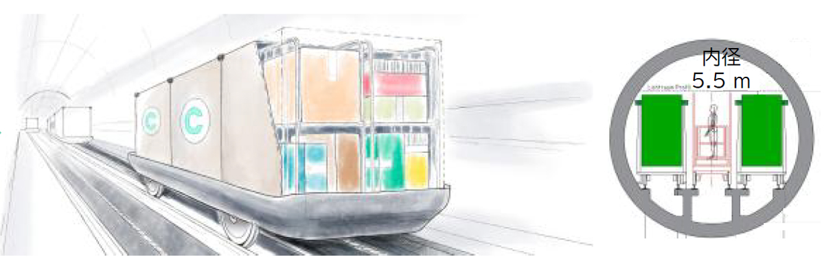 CTSは、既存技術に基づいて地下物流システムを構築し、現在の輸送ルートへの負担を軽減して都市と地域経済を均等に強化することを目指して検討が進められているプロジェクトで、当初は3車線でトンネル内の電源から動力を引き込み自律的に移動するシステムが想定されていたが、輸送効率や保守のしやすさ、火災リスク低減などの観点から、現段階では2車線のケーブルけん引システムが最適であると判断されている。