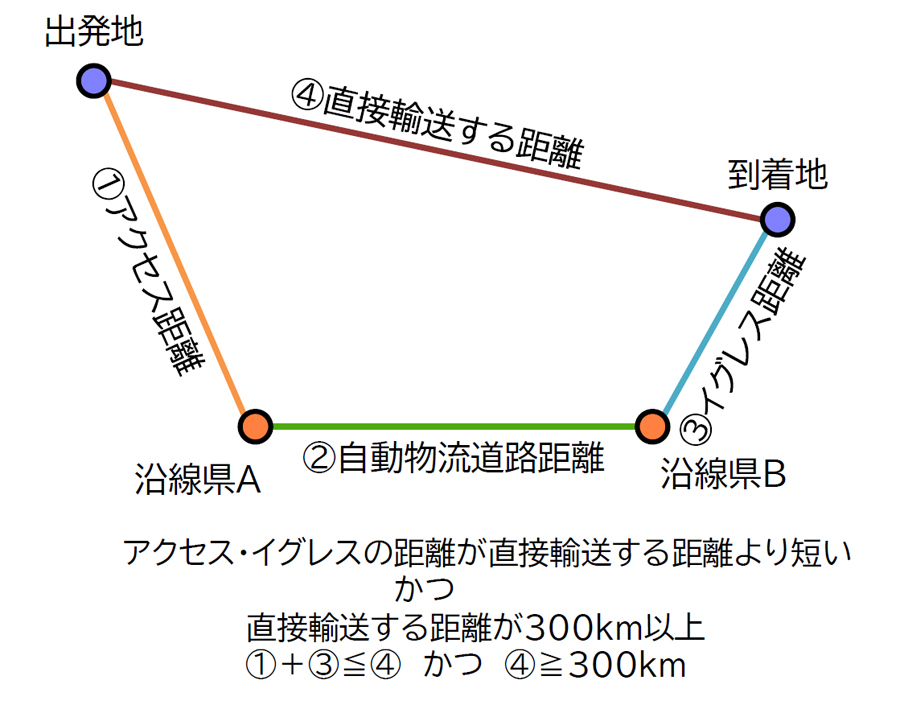 東名・名神高速の沿線都府県を「沿線」、沿線県から300km以内を「後背圏」に設定して、沿線・後背地に出発地、到着地が含まれる移動のうち、出発地から到着地までの距離が300km以上で、かつ出発地から自動物流道路への「アクセス距離」と自動物流道路から到着地までの「イグレス距離」を足した距離が、直接輸送する距離より短い貨物輸送の道路利用を、自動物流道路の「対象OD(起終点移動)」とした場合、高速道路を利用するトラック輸送需要のうち、自動物流道路の対象ODは205年度推計値の重量ベースで約21%、危険物や重量品など自動物流道路に適さない貨物を除外した場合には41%が自動物流道路への転換ポテンシャルであるとの試算結果が示された。