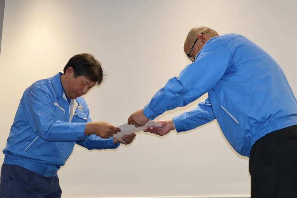 大会は、経営方針や事業報告、安全報告などタカスエグループの方向性や情報の共有、努力や成果をたたえることでグループの一体感・連帯感を高める目的で半期ごとに開催。