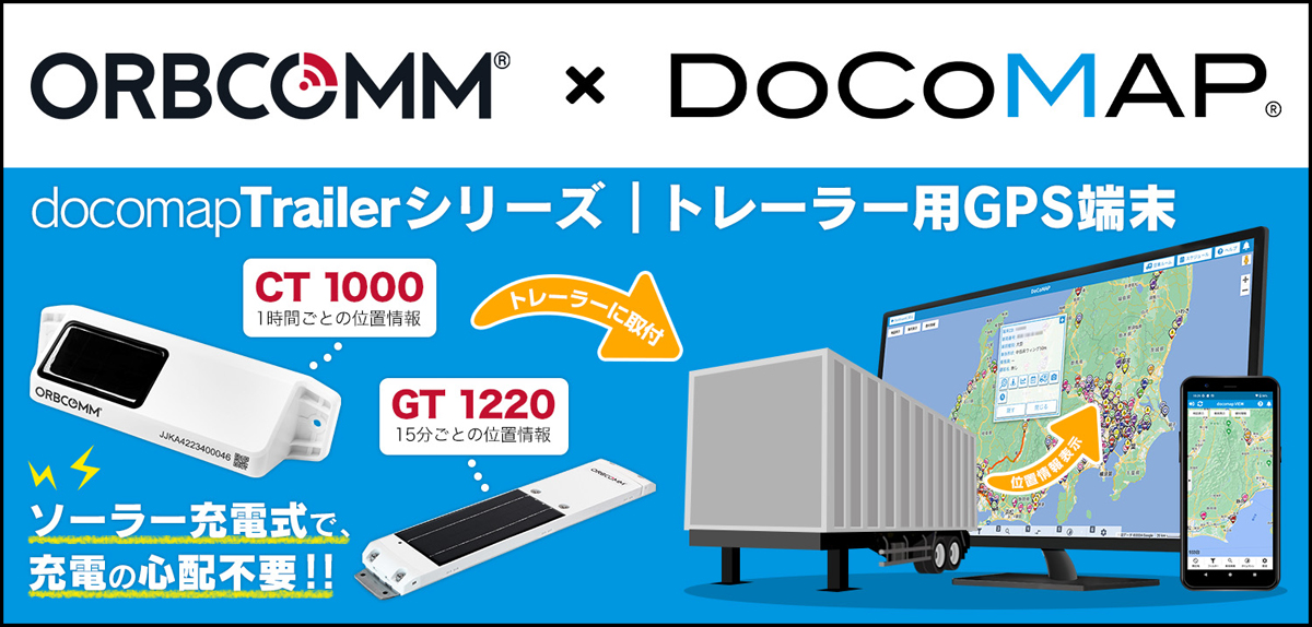 ドコマップジャパンは4月6日、オーブコムジャパンを通じ、ORBCOMM製のGPS端末「GT 1220」「CT 1000」を「docomapTrailer(ドコマップトレーラ)」の対応端末として導入し、提供開始すると発表した。