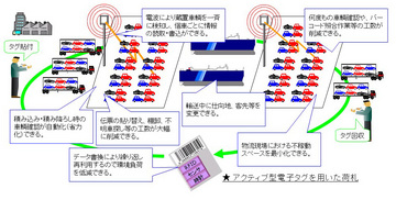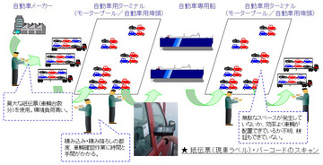 改善にあたって、(1)位置情報を示すuコードなどの空間コード、(2)国際的に利用されており、日本では国際物流用として開放されている433MHz帯の周波数を利用したアクティブ型電子タグ–を活用し、岡山県倉敷市に所在するMMC水島製作所モータープールと水島港、関係する国内外の物流現場で本年夏頃から順次試行を開始する。