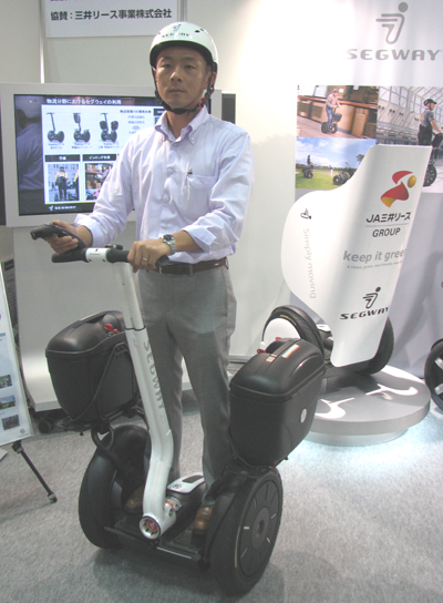 セグウェイを販売する日本SGIと三井リース事業は、国際物流総合展に出展し注目を集めた。排ガスを出さない輸送機関として注目されているセグウェイは、物流分野での利用を進め「Segway PT i2 工場・物流向けパッケージ」を提供している。
