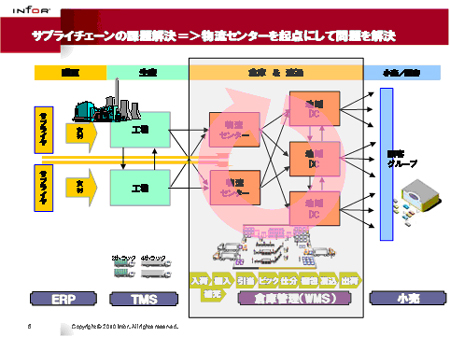 物流センターを基点にして、サプライヤーからエンドユーザーまでの大きい流れのなかでいろんな問題がありますが、物流センターが重要な一つの問題解決の重要な要素になります。